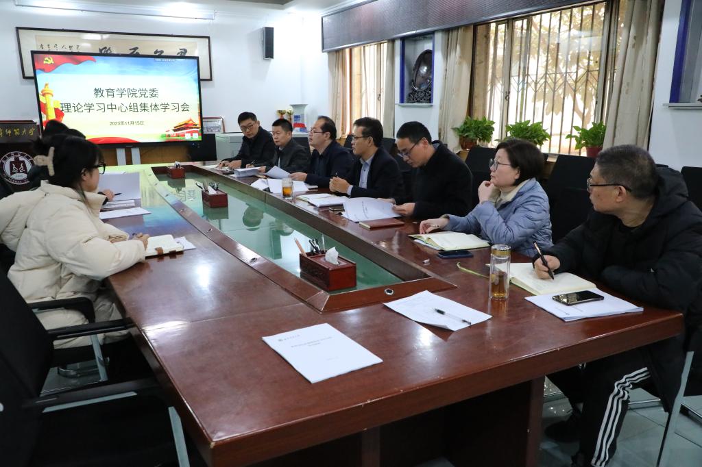 会上,孙超同志领学《全面从严治党探索出依靠党的自我革命跳出历史周期率的成功路径》(摘自习近平总书记在十九届中央纪委六次全会上的讲话),与会人员一同观看习近平总书记在第三届“一带一路”国际合作高峰论坛开幕式上的主旨演讲新闻报道视频,认真学习《习近平总书记教育重要论述讲义》第四讲《我国教育最鲜亮的底色——坚持社会主义办学方向》和和第七讲《充分激发教育事业发展生机活力——坚持深化教育改革创新》。全体与会党员围绕学习内容进行了深入的交流研讨,张东霞同志表示作为一名基层思政工作者,将继续坚持不懈用习近平新时代中国特色社会主义思想凝心铸魂,在真学真懂真信真用、深化内化转化上下功夫。李昕禧同志表示作为研究生党支部书记,要落实好习近平总书记深化教育改革创新的要求,立足专业,做好理论联系实际的工作。大家纷纷表示,身为党员,要深刻领会全面从严治党的内涵,坚持用“革命理想高于天”的信仰强基固本、凝心铸魂;作为教育工作者,要坚持社会主义办学方向,头脑清醒、立场坚定、态度鲜明,要勇于改革创新,以教育改革激活力、增动力。