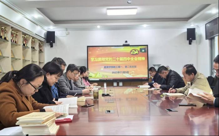 101会议室联合召开党员大会,专题学习研讨党的二十届四中全会精神。教工第二党支部书记杨尊伟主持会议。
