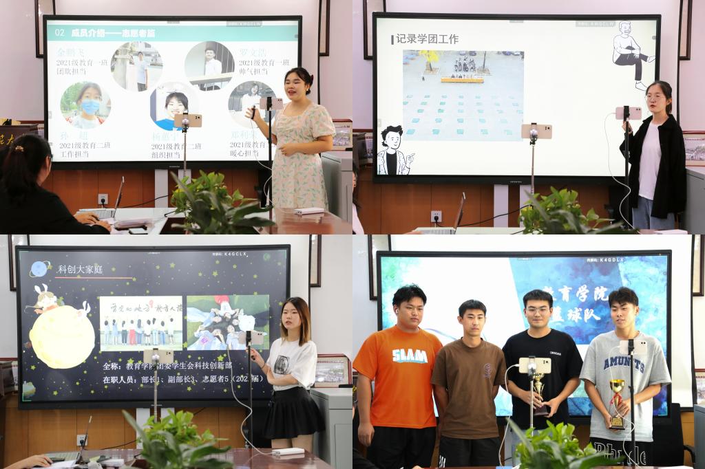 各球队也拿着奖杯带领队员们进行了线上展示、宣传。宣讲的同学们饱含热情,“快快加入我们”成为这场宣讲会出现频率最高的词句。在轻松愉快、热烈活泼的氛围中结束了学生会19个部门和5个球队的宣讲。