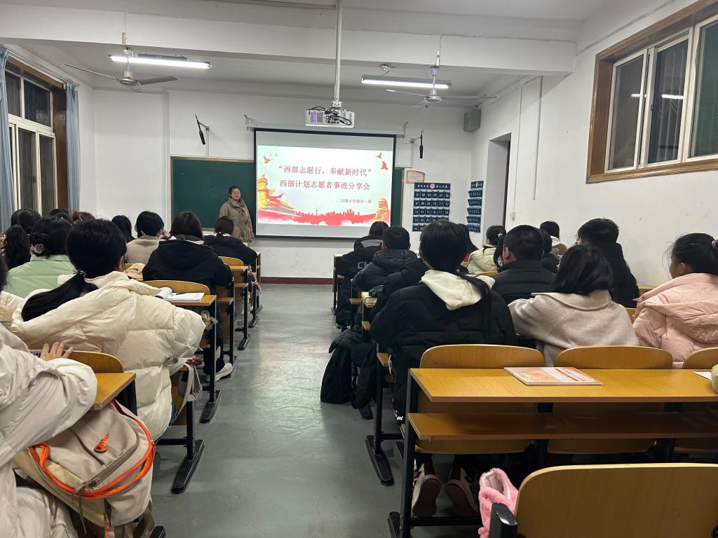 组织学生以线上线下相结合的方式观看学校往届西部计划志愿者事迹分享会。