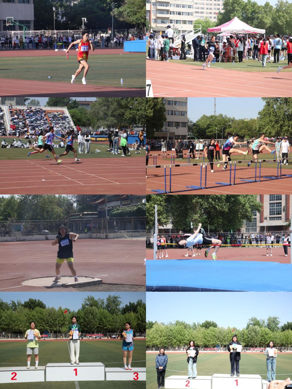 的运动健儿们凭借坚韧不拔的意志和激情四溢的表现,在各个项目中脱颖而出,取得了令人瞩目的成绩:在径赛中,学院女子4×100米决赛中荣获第四名,女子4×400米决赛中荣获第七名,男子4×400米决赛中荣获第七名,徐艳迪在女子100米栏、400米栏决赛中均荣获第二名,许如雪在女子1500米决赛中荣获第二名,张文婷在女子400米决赛中荣获第五名,张馨月在女子800米决赛中荣获第五名,曹颖慧在女子100米栏决赛中荣获第六名,冀欣悦在男子100米决赛中荣获第六名;在田赛中,陈韵帆在女子铅球决赛中荣获第一名,毕英洁在女子跳远决赛中荣获第四名,迟橙在女子跳高决赛中荣获第六名,张仓萍在女子三级跳远决赛中荣获第七名,卢彦杰在男子跳高决赛中荣获第七名,郭佳怡在女子三级跳远决赛中荣获第八名。