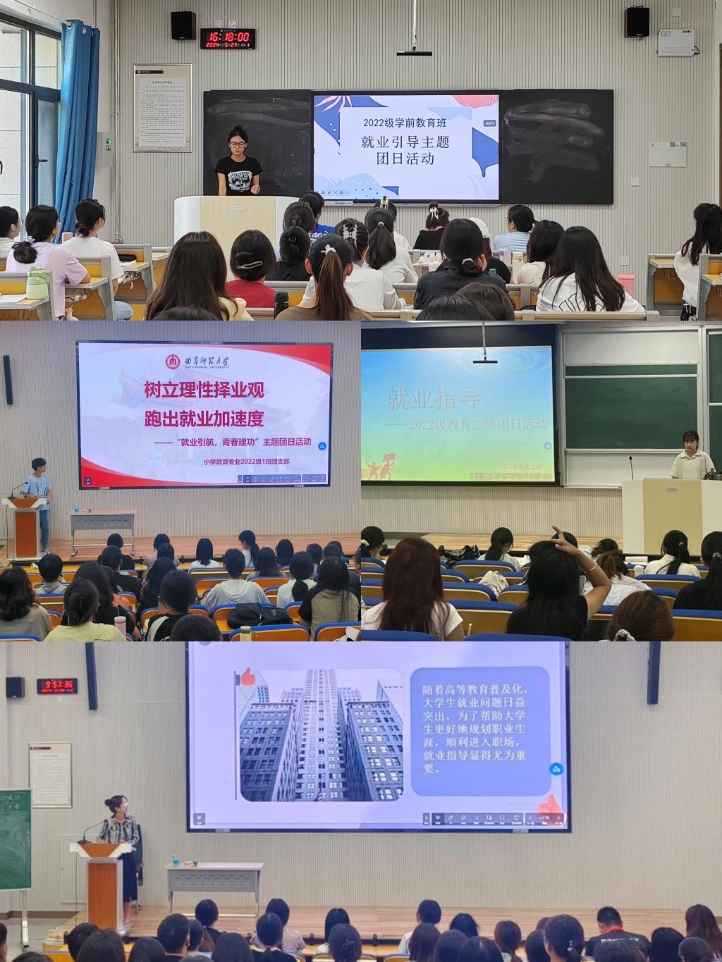 活动中,各年级结合阶段和专业实际,精心谋划,认真组织,取得了显著成效。2023级团支部重点帮助学生提升职业认识,根据各自专业特色,逐步明确职业发展意向;2022级团支部重点帮助学生挖掘个人潜力、深化职业发展规划等方面的理性思考;2021级团支部通过线上会议的方式,结合正在进行的教育实习经历经验,帮助他们明确就业目标,规划就业路径;毕业年级团支部的重点则转向实际就业指导,帮助尚未就业的学生精准把握就业市场动态,提升求职技能,增强求职竞争力,助力早日就业。