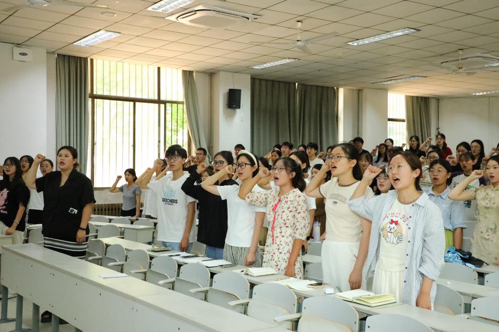 6月26日下午,学院2025届团委学生会组织全体成员于综合楼101室举行诚信考试集体宣誓。活动现场,参会人员全体起立,在领誓人的带领下举起右手,以铿锵有力的声音集体宣誓,承诺端正态度,认真备考,自觉遵守考场纪律,诚实守信不违纪,积极营造公平、公正、诚信的考试环境。