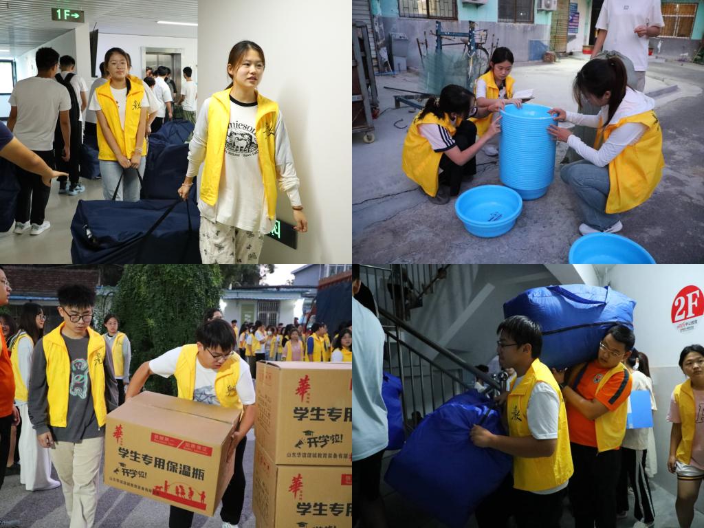 清晨五点,志愿者们就早早到达搬运分发现场,怀着饱满的热情和积极的态度投入到工作中。搬运过程中,同学们有序分工、快速行动、相互协作,按照各宿舍相应新生人数放置物品并确保无疏漏,全方位做好迎新准备工作,全心全意为新生提供服务保障。