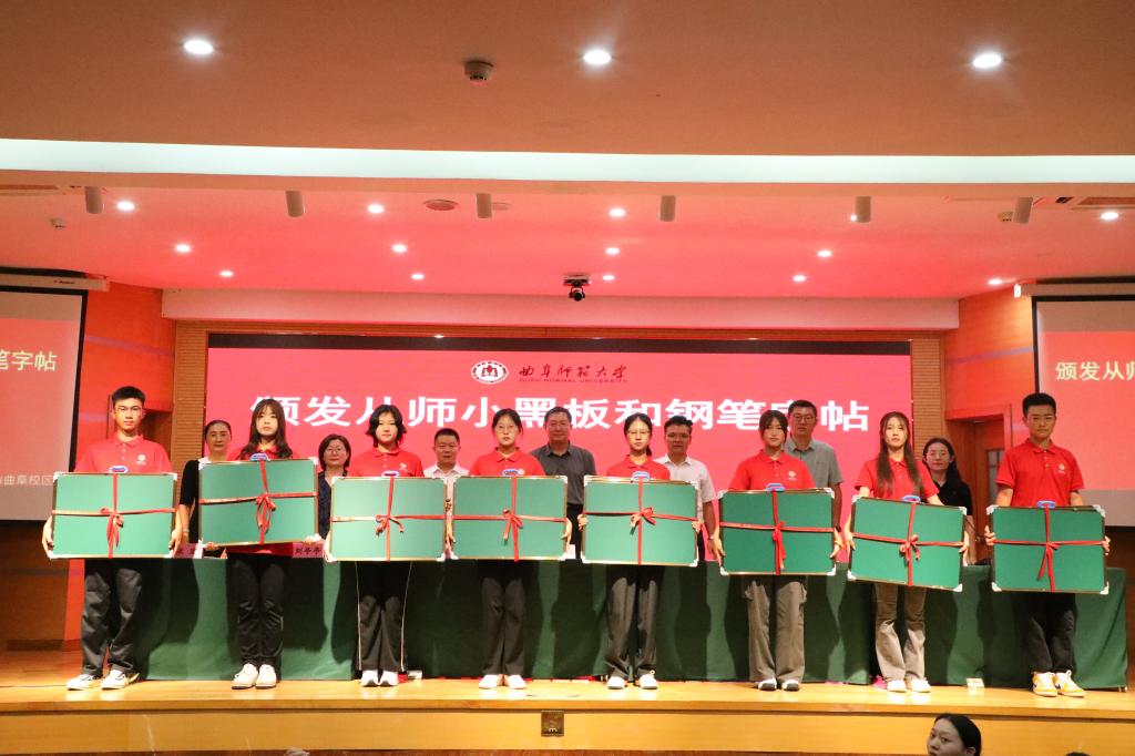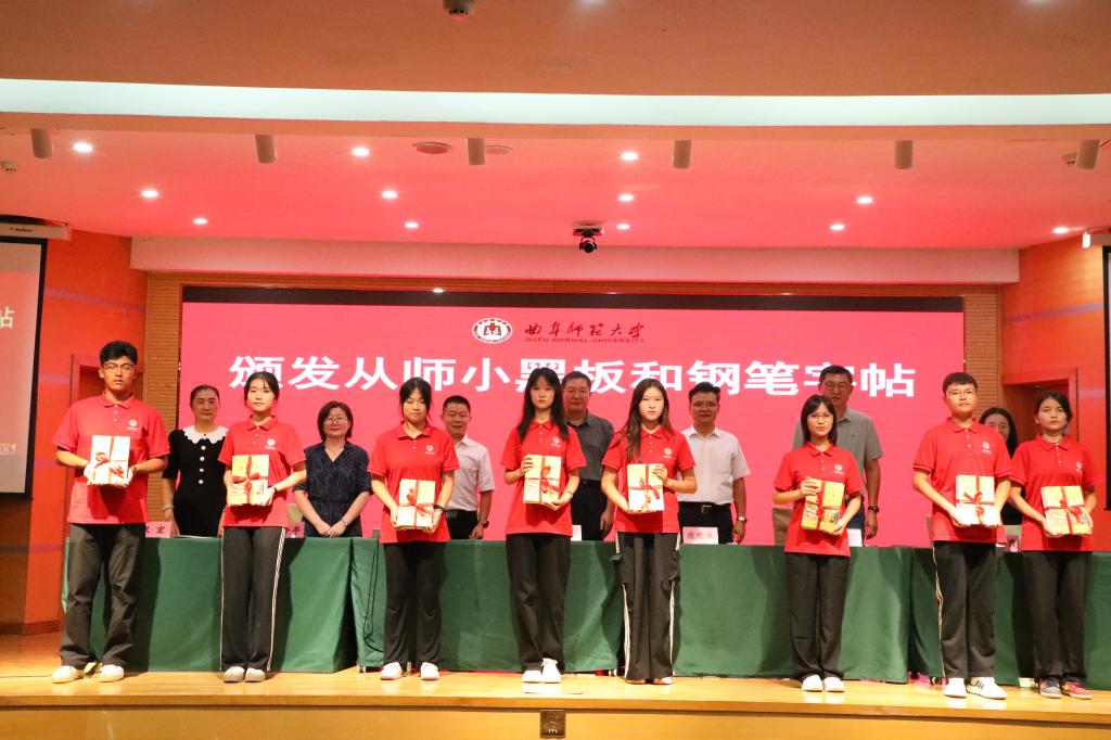 随后,领导老师们为2024级新生代表颁发从师小黑板和钢笔字帖,并希望同学们能够领会学院的良苦用心,充分用好每一块黑板、每一页字帖,勤奋练习,用心书写开车漫画