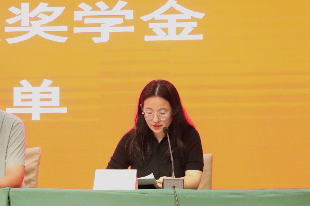第六届弘毅奖学金获奖学生名单:王梓晗、高铭悦、胡馨雨、张晨露、曹雅铎、李婉仪、曾妮妮、赵云乐、隋荣、赵雨欣。主席台领导老师为获奖学生颁奖,并鼓励大家继续奋进,再创佳绩。