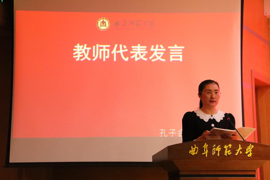 教师代表张宏在发言中对新生的到来表示欢迎,她寄语各位新同学,要尽快转换角色,融入大学生活;面对困难要意志坚强、充满信心;做人要心胸开阔,学会包容他人。她表示学院全体教师会秉持传道授业解惑的理念,全心全意为学生服务,并期望同学们积极主动,乐观向上,不畏艰难,充实自我。