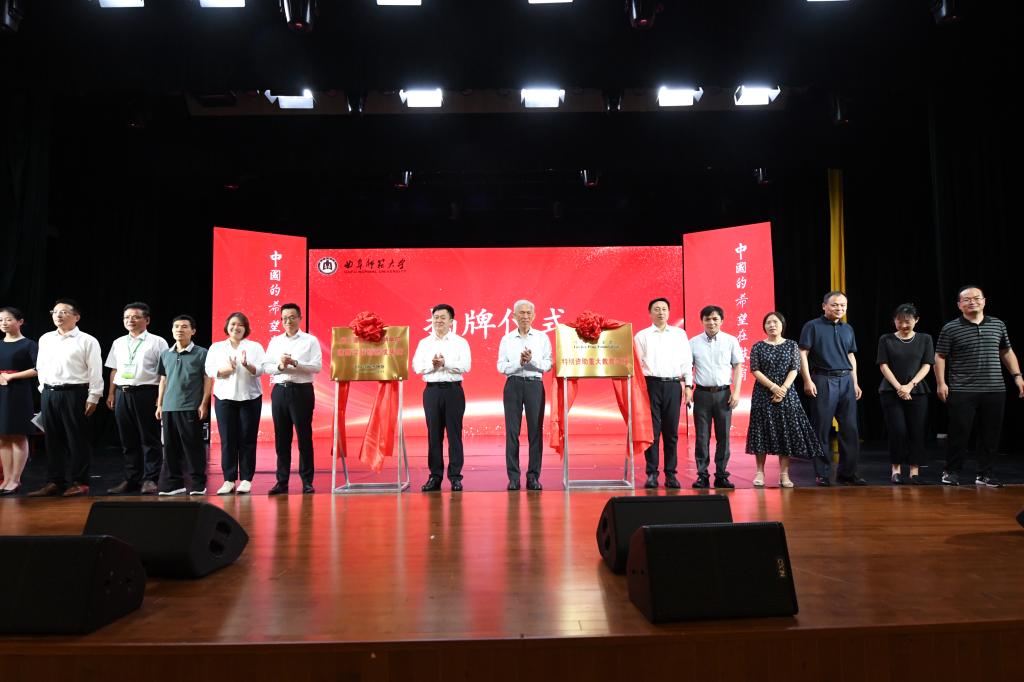 会上,田庆先、张洪海共同为“田家炳基金会特别资助重大教育工程”揭牌,田立仁、戚万学共同为第三届全国田家炳学校德育实践创新奖的专题展览揭幕。