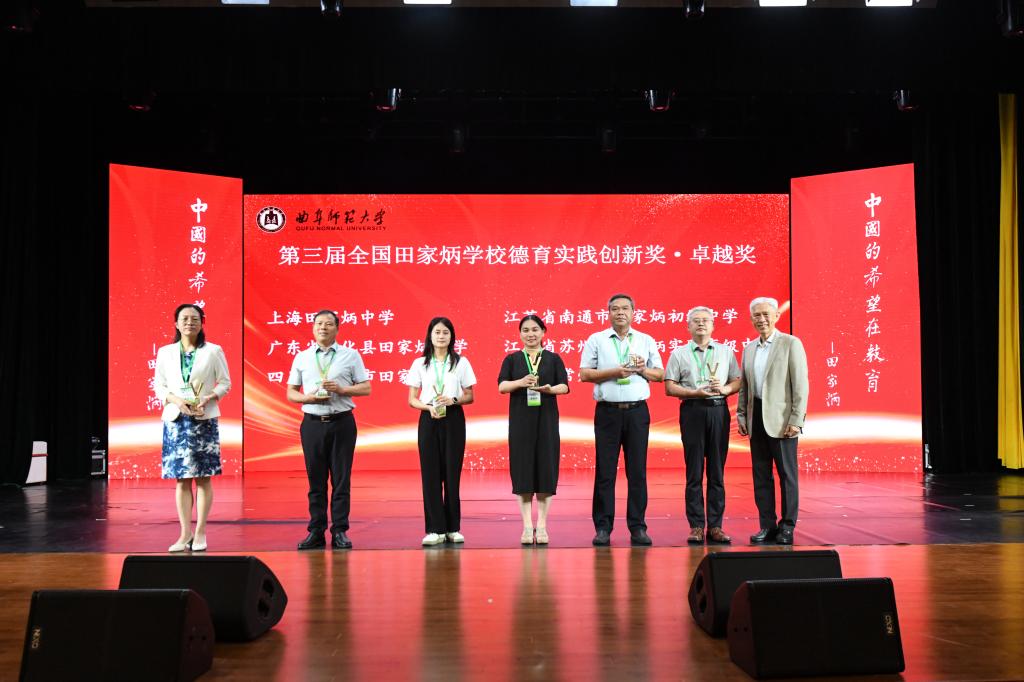 随后,唐爱民汇报评选工作并宣布获奖名单。经过14位国内资深德育专家的参与指导,共评选出18个获奖项目,其中6项获“德育创新卓越奖”,12项获“德育创新优秀奖”。田庆先为第三届全国田家炳学校德育实践创新奖·卓越奖颁奖,戚万学、张洪海为第三届全国田家炳学校德育实践创新奖·优秀奖颁奖。
