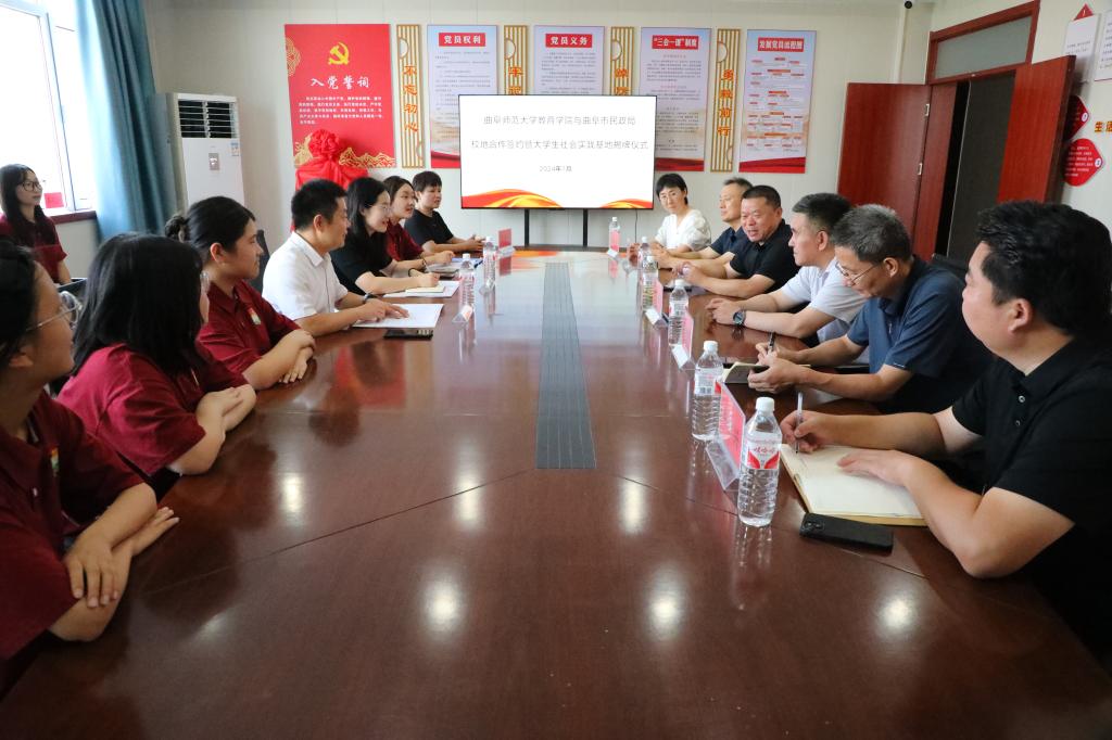 仪式上,孙超与曲阜市民政局党组书记、局长许鹏共同为大学生社会实践基地揭牌。