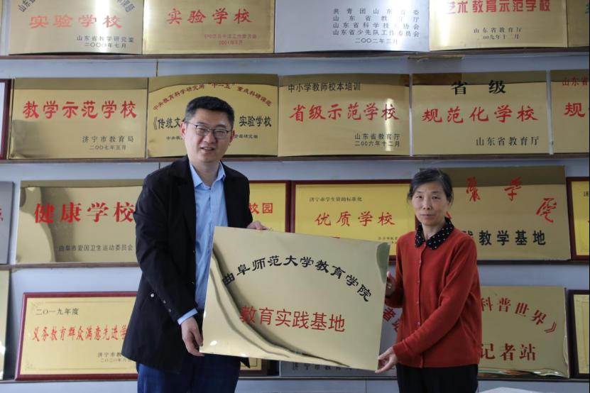 副院长齐军、青年教师王浩出席仪式。曲阜市田家炳小学校长刘玉华及优秀教师代表参加挂牌仪式。