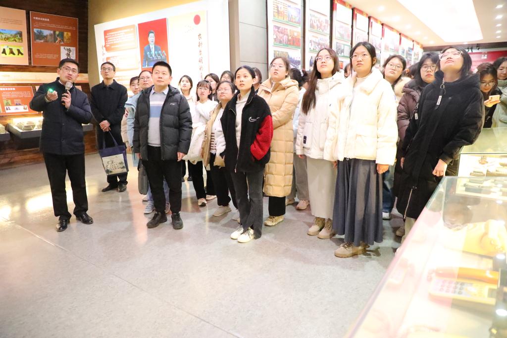 在邹城市后八里沟村党史村史展览馆,同学们实地了解“中国美丽乡村”“全国文明村”——后八里沟村的发展历程。后八里沟村坚持以服务型党组织建设为统领,村党委以中华优秀传统文化——孝善文化为抓手,团结带领全体村民大力实施乡村振兴战略,创办集体企业,通过十几年艰苦奋斗让全体村民过上了富裕、民主、和谐的幸福生活,奋斗历史、创业事迹令人感动难忘。设施齐全的为民综合服务大厅、高大庄严的毛主席像、美丽而壮观的村广场等,都向大家展示了在党的引领下,昔日贫困村落如今的崭新面貌,让大家深刻地感受到“干不到一流就是失职、拿不到第一就是落后”的闯劲,坚定了广大青年学生听党话、跟党走的政治信念,增强了同学们对中华优秀传统文化的认同感,激发了同学们奋发向上、积极投身美丽乡村建设的志向和热情。