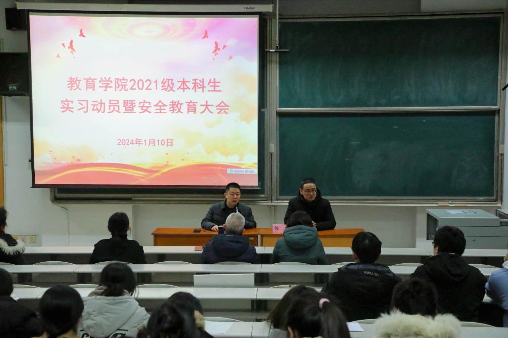 党委副书记孙超主持会议,副院长徐瑞出席会议并讲话,学院实习指导老师、2021级全体本科生参加会议。