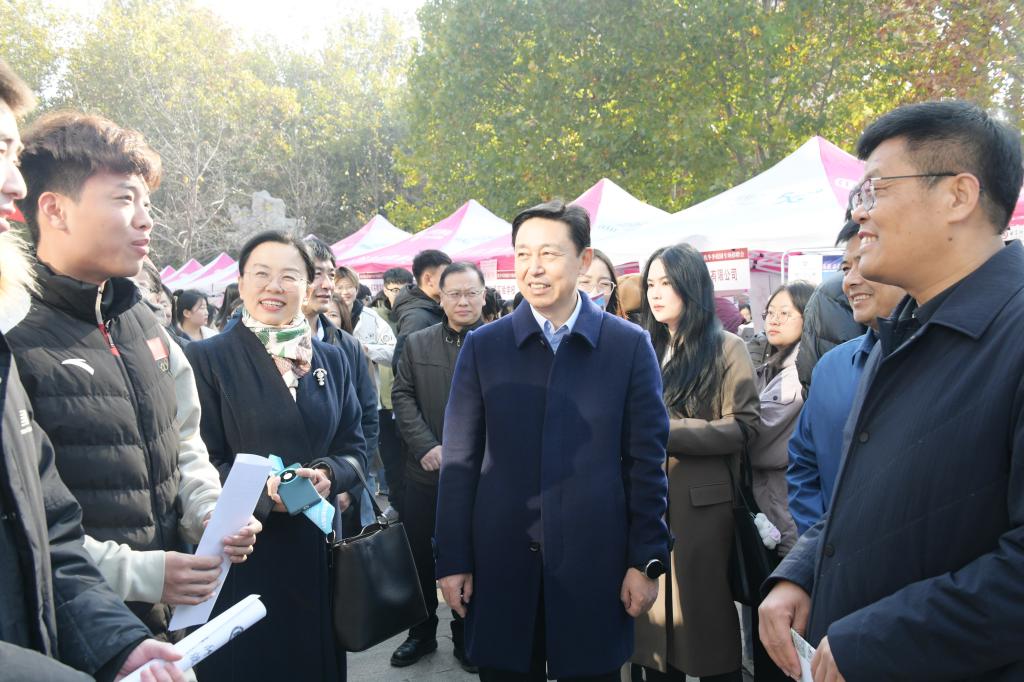 招聘现场,学校领导与用人单位负责人和应聘学生进行深入交流,了解招聘岗位需求和求职应聘情况,亲切询问毕业生求职意向,为学生提出指导性建议,同时勉励同学们找准个人发展定位,树立正确择业观,把握机遇,主动出击,实现高质量就业。调研过程中,学校领导还同学生工作处和承办单位负责同志现场办公,探讨创新工作理念,改进就业工作实效,要求学生工作处统筹指导承办学院及时总结经验教训,在今后的工作中加以改进,全力以赴助推毕业生充分高质量就业。