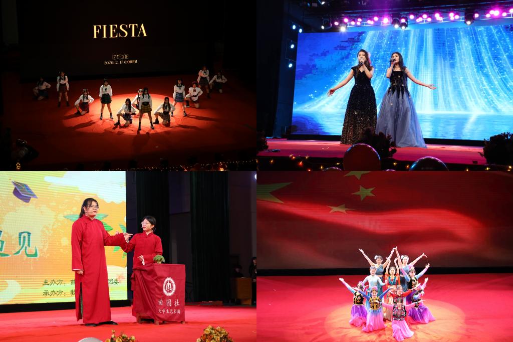 晚会分为“再育”“再见”“再遇见”三个篇章。第一篇章“再育”中,充满青春力量的《Fiesta》舞蹈欢乐开场,《星辰大海》《民舞串烧》等节目活力四射,精彩纷呈;第二个篇章“再见”中,《背对背拥抱》《可惜不是你》和《再见》的旋律,离别的氛围渐浓,勾起了毕业生们对母校和学院的眷恋之情;第三篇章“再遇见”中,老师们在寄语视频中表达了对毕业生的殷殷期望与美好祝愿,在《爱要坦荡荡+我们一起喜羊羊》《Leftright》等充满活力、朝气的欢快节目氛围中,我们终会“再遇见”。