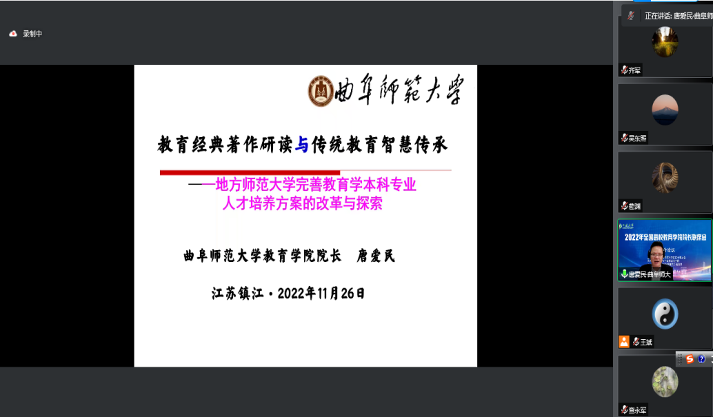 唐爱民院长主持了第四分论坛的学术讨论,并作了“教育经典著作研读与传统教育智慧传承——完善教育学本科专业人才培养方案的改革与探索”的分论坛主题报告。