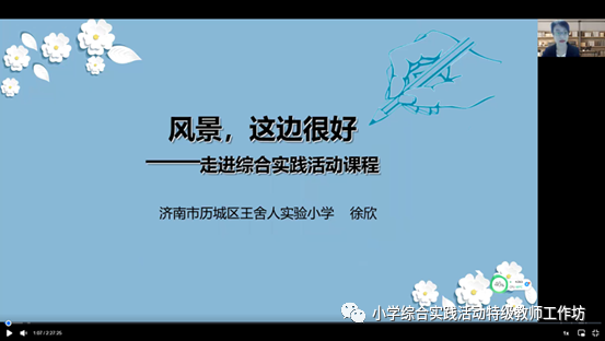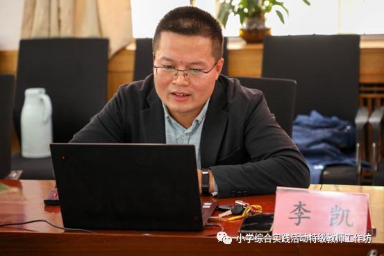 教育系主任李凯博士,分别围绕综合实践活动、劳动课程做了专题报告,山东省小学综合实践特级教师工作坊主持人李允教授主持报告。