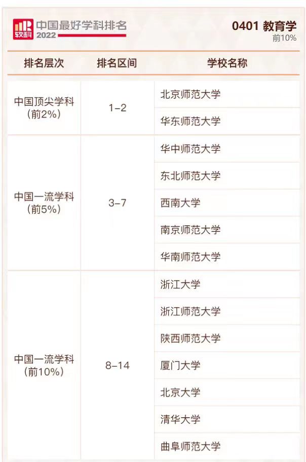 这是继2017年以来,我校教育学连续5年入围软科中国最好学科排名前10%。