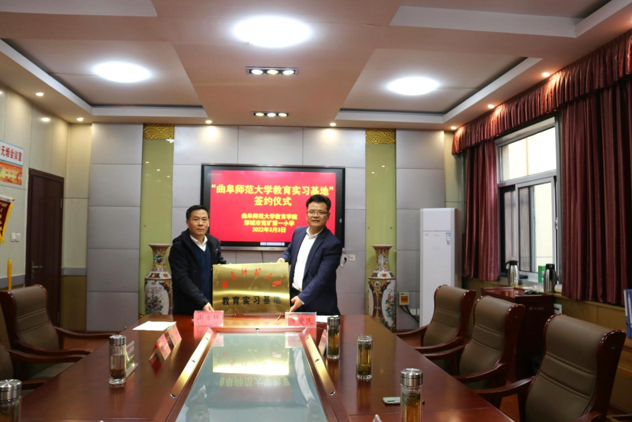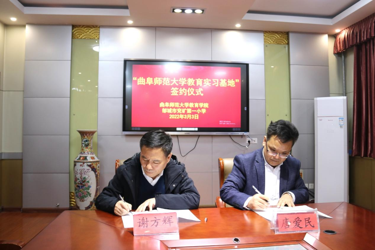 向兖矿一小对建立实习基地所做的辛勤工作表示感谢,并提出今后双方将在课堂教学模式探索、教师专业发展、校园文化建设等方面开展全方位合作。随后,唐爱民院长、谢方辉校长代表双方签订共建协议书,并为实习基地挂牌。会后,唐爱民一行参观考察了兖矿一小的创客空间建设情况和课后服务开展情况,并到兖矿一小机关幼儿园进行现场调研。