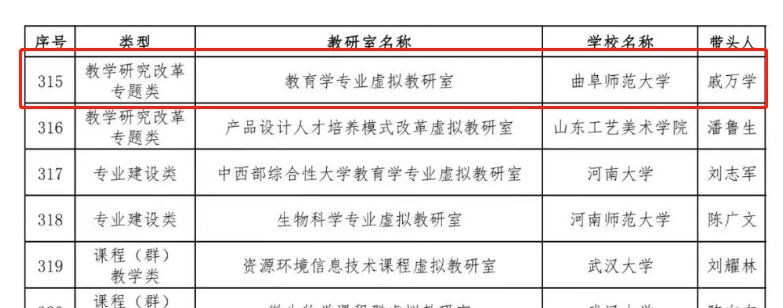 戚万学教授领衔的教育学专业虚拟教研室获批教育部首批虚拟教研室试点建设项目,这是我校基层教学组织建设的重大突破。