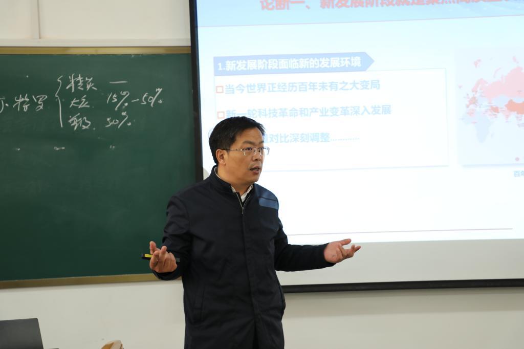 胡钦晓教授首先从今年作为建党百年,“十四五”开局之年,党和人民胜利实现第一个百年奋斗目标、全面建成小康社会,向着全面建成社会主义现代化强国的第二个百年奋斗目标迈进的关键之年讲起,在全国上下深入学习贯彻党的十九届六中全会之际,围绕“开局‘十四五’ 聚焦高质量”这一专题,着重讲授了“两次全会”关于高质量发展的有关精神,深入阐释了三个概念“新发展理念、新发展阶段、新发展格局”,以及体现这三个概念与高质量发展内在联系的三个论断,以此引导师生深化认识“十四五”时期我国经济社会发展的主题。随后,结合学校“十三五”事业发展成就和“十四五”发展规划,重点介绍了学校高质量发展的思路和举措,描绘了复兴曲园荣光的新蓝图。尤其在展示美丽的“西区效果图”后,令在座的每一位师生心潮澎湃,激动不已。最后,胡钦晓教授以习近平总书记在清华大学考察时的重要讲话与大家共勉:“广大青年要肩负历史使命,坚定前进信心,立大志、明大德、成大才、担大任,努力成为堪当民族复兴重任的时代新人,让青春在为祖国、为民族、为人民、为人类的不懈奋斗中绽放绚丽之花。”