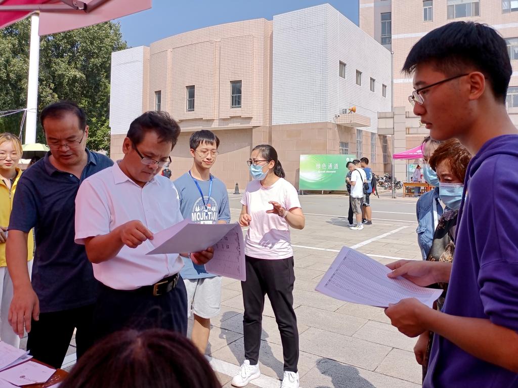 新生报到工作顺利有序进行。学院党委书记尹树林、院长唐爱民、团委书记周长缨、2018级辅导员王保英、2019级辅导员张东霞亲临孔子文化广场迎新工作地点,帮助新生答疑解惑,给予工作人员与志愿者慰问与鼓励,检查迎新准备工作,确保迎新工作做实做细。