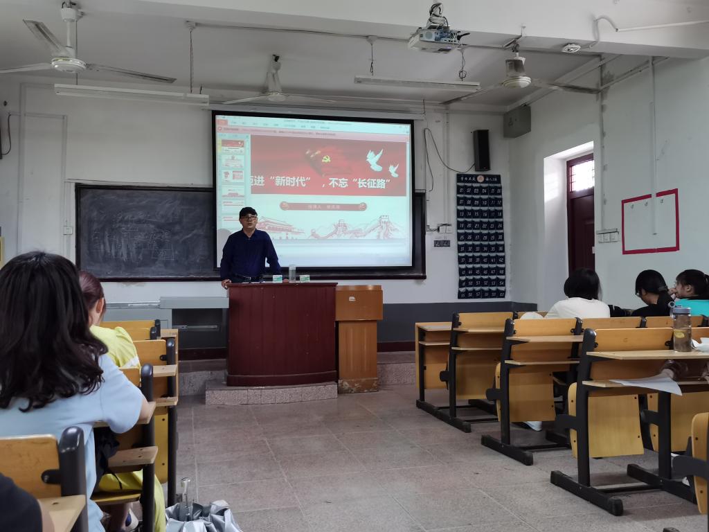 5月12日下午,学院党委副书记徐庆海在系楼304室为2020级小学教育班讲授了题为《迈进“新时代”,不忘“长征路”》的思想政治课。