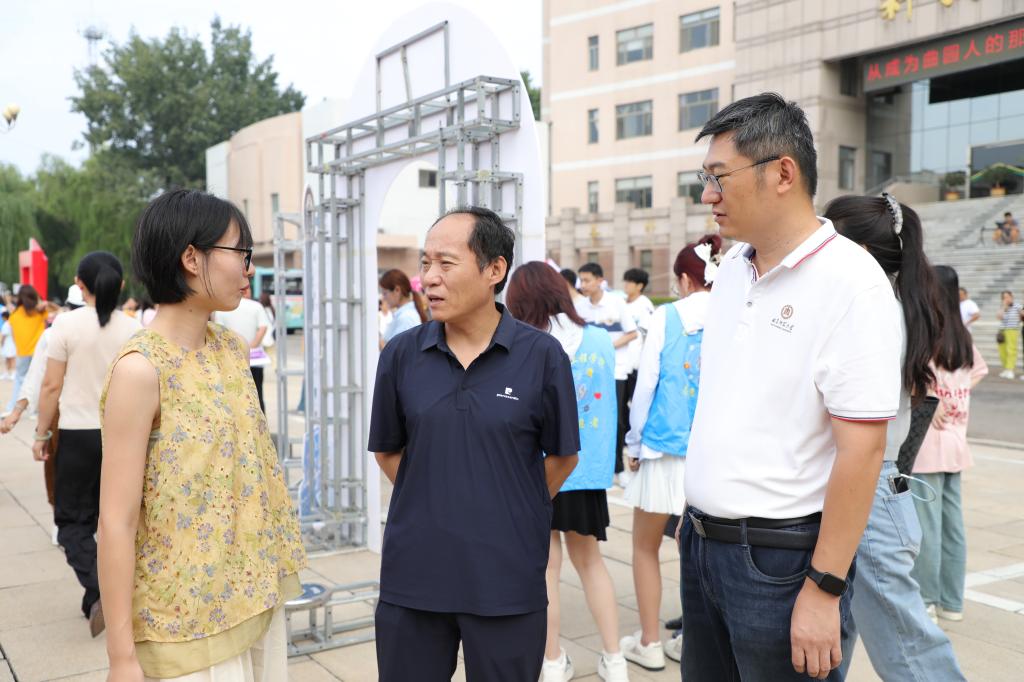 迎新现场,学院领导逐一走访各迎新工位,详细询问报到流程、新生数据实时统计及物资保障情况,对工作人员和志愿者的辛勤付出表示慰问。领导们充分肯定了学院“一对二精准对接”和“小组协同”服务机制,并对前期周密的工作部署和高效的工作推进予以高度评价。
