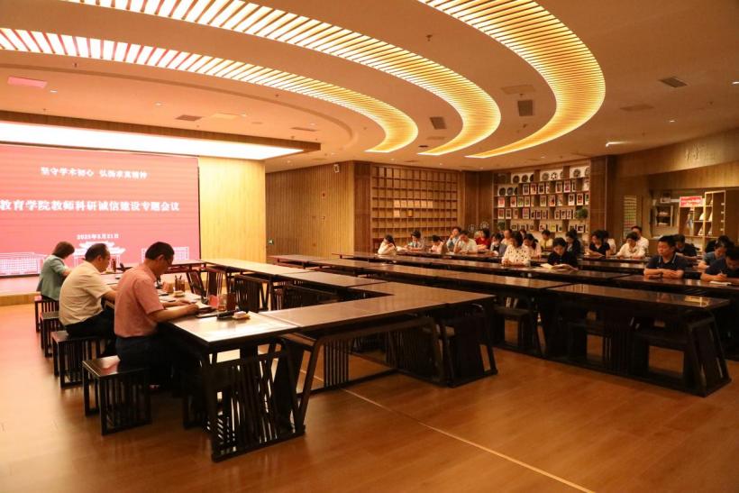 在教师博物馆三楼教育家讲习馆召开科研诚信建设专题会议。学院党委书记尹树林主持会议,副院长刘亭亭领学相关文件,学院全体教师参会。