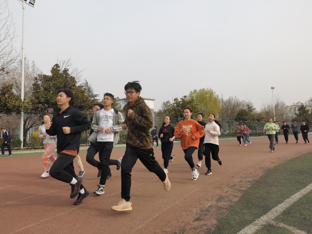 周老师首先发表讲话,鼓励学生们积极参与春训,发扬不怕苦不怕累的精神,努力训练,坚持到底,提高水平。周老师还强调了训练中安全问题,训练中要时刻将安全放在第一位,注意安全,做好准备运动,不要在高强度训练中受伤。随后,运动员们投身训练中,长跑热身,压腿活动,波比跳,限时冲刺等,运动员们在操场上挥洒着汗水与激情,显示着蓬勃向上的青春姿态。