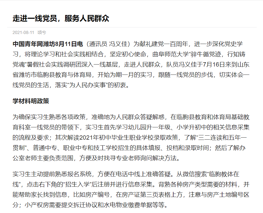 中青网:走进一线党员,服务人民群众