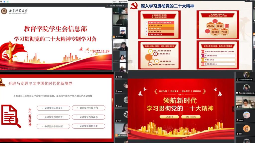 团委、学生会各部门积极开展学习贯彻党的二十大精神主题座谈会,迅速掀起学习贯彻党的二十大精神热潮。
