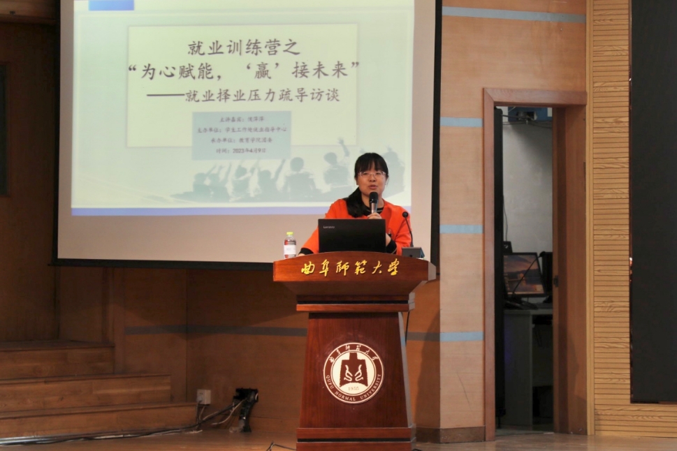 辅导员候萍萍老师担任主讲,以“为心赋能,‘赢’接未来”为主题,面向曲阜校区本科学生开展就业择业压力疏导。