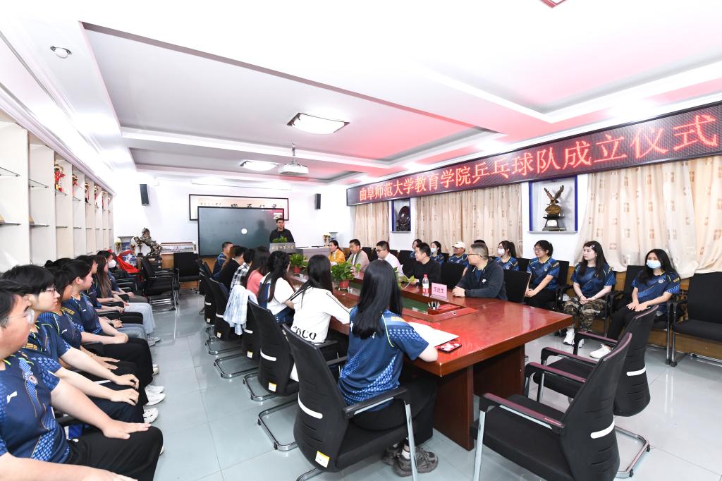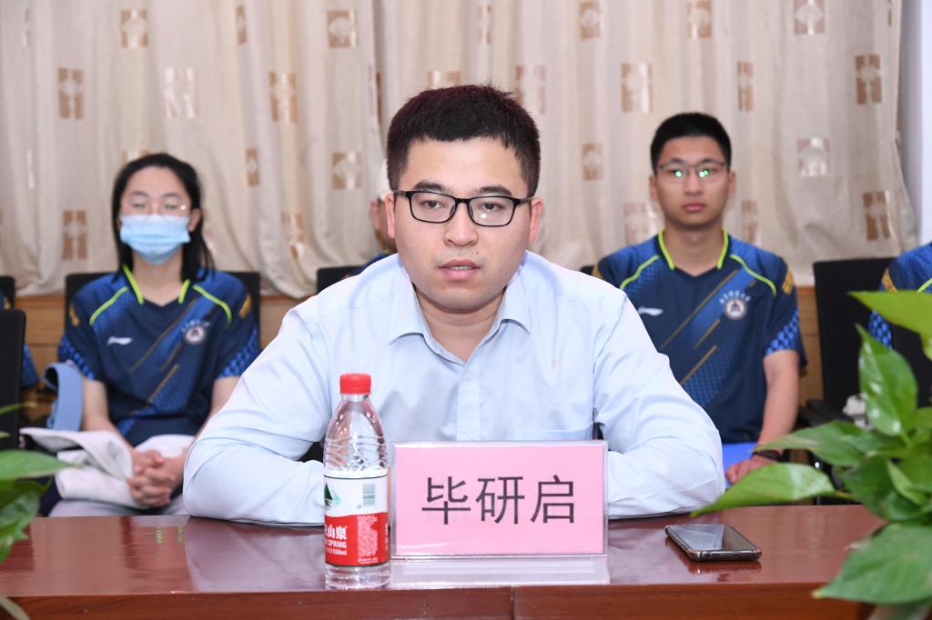 乒乓球队成立感到很荣幸,对球队的成立表示祝贺。他指出,青年学子适当培养兴趣爱好是很有益处的,并希望能够与同学们沟通交流、相互探讨,在未来与学院取得更加丰硕的合作交流成果。