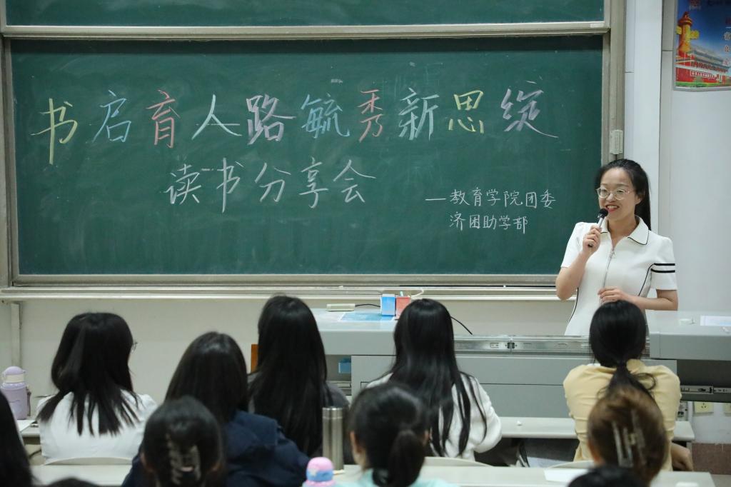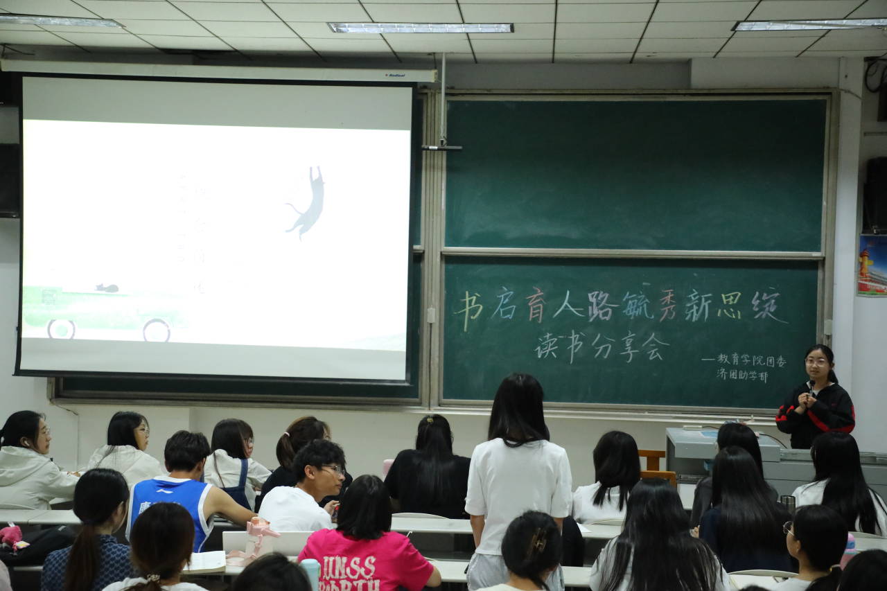 张凤娟以“有光的地方就有人读书——读书之我见”为主题,向同学们分享了《高等教育哲学》,解释了高等教育的含义,同时鼓励同学们去深入探索有关高等教育的学术知识。孙秀芝以 “《教育漫话》读书分享”为主题,讲述了约翰·洛克的绅士教育思想,阐述了其健康教育、道德教育和知识与技能教育的观点。两位朋辈导师与参会同学积极互动,同学们踊跃发言,在交流中思考,让同学们体会到了知识碰撞与分享的美好。