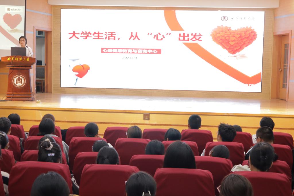 心理辅导员王保英担任主讲,学院全体2023级新生参加活动。