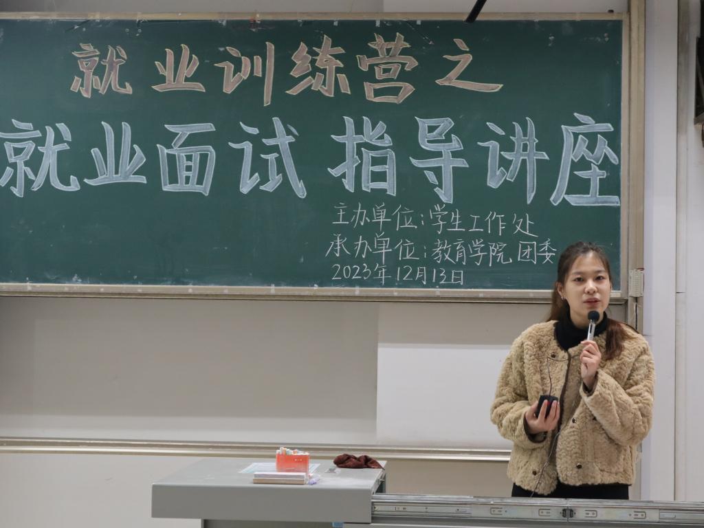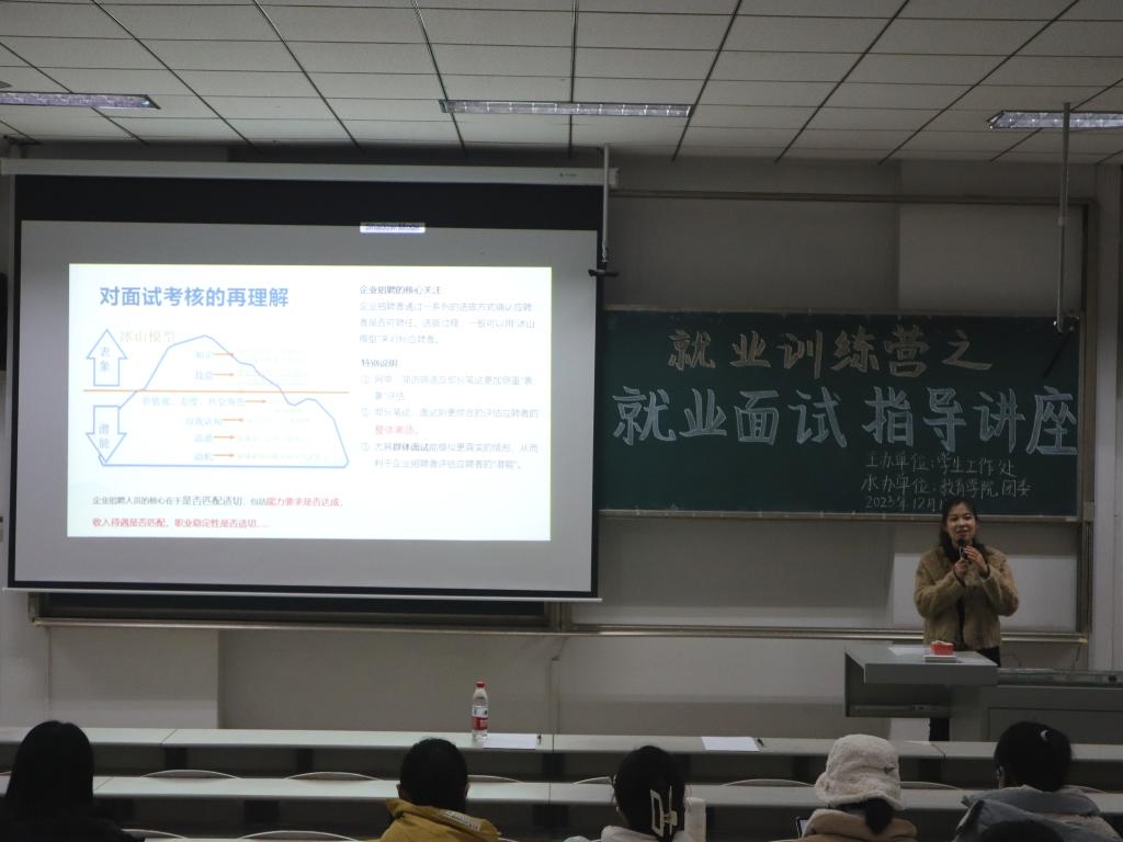 团委承办的就业训练营之就业面试指导讲座在综合楼201教室顺利举行。本次讲座面向学校全体学生,由学校学生工作处创新创业教育中心主任赵彤主讲。