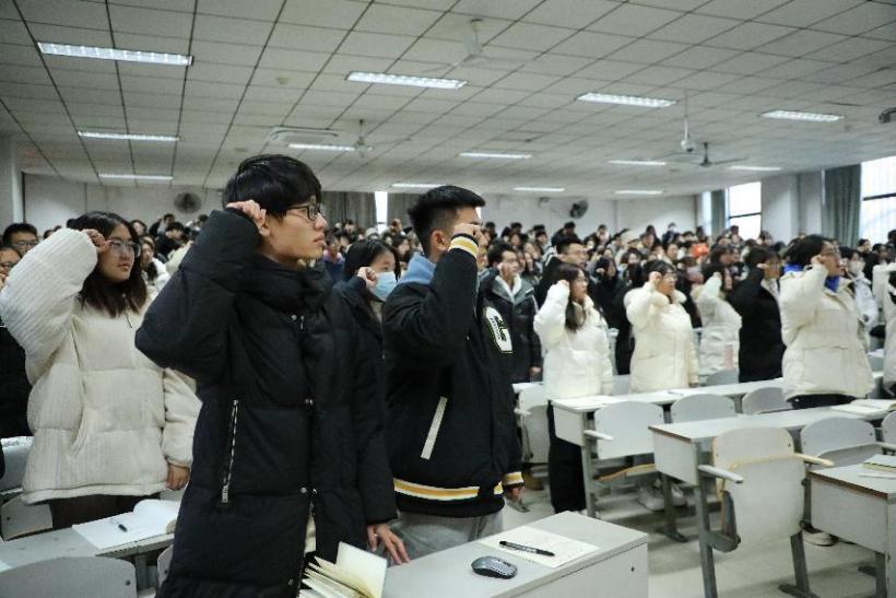 会上,为进一步严肃考风考纪,带头共同创建公平、公正、诚实守信的考试氛围,秘书处副秘书长方玄支带领团委学生会全体成员进行了诚信考试集体宣誓。