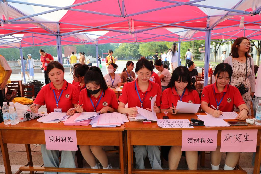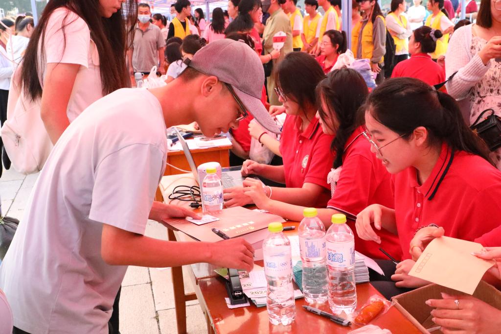 实行“一站式”迎新服务,新生报到时只需一键扫描,快速完成身份核验,领取已备好的入学礼品、宿舍钥匙和物品确认单等材料,由志愿者带领至宿舍入住,轻松有序、简单快捷。