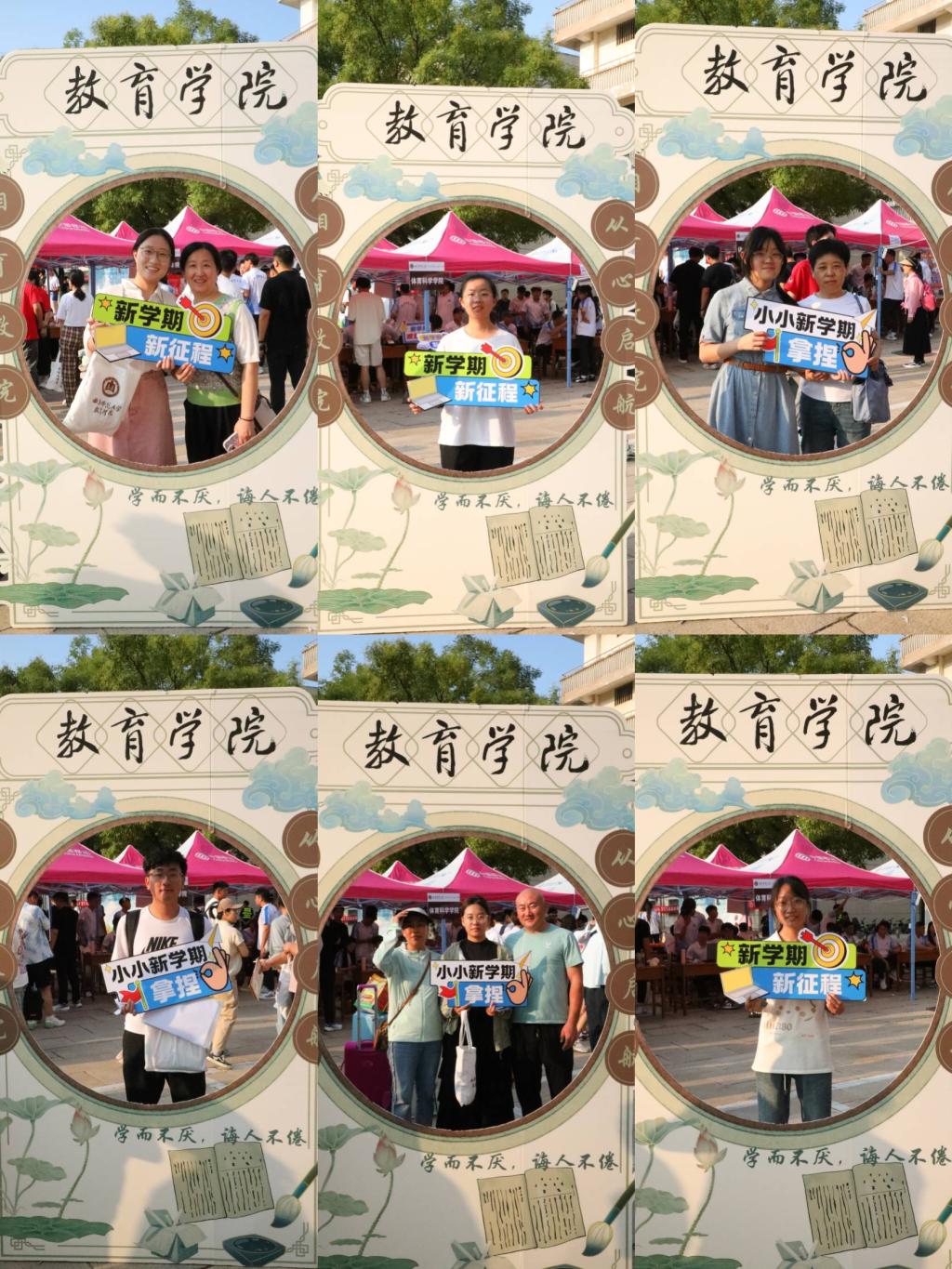 迎新专属立牌,每一位报到新生都驻足留影,拍下“我”和开车漫画