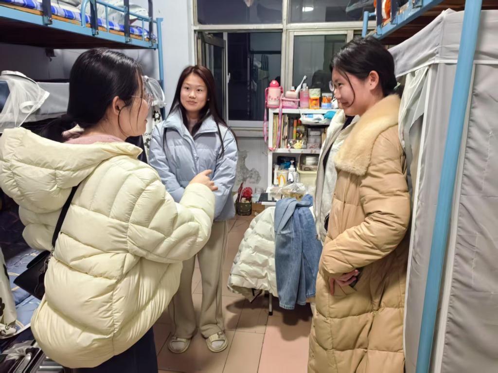 2月16日,学院辅导员深入学生宿舍,细致询问学生寒假生活、和返校适应情况等相关事宜,并叮嘱学生在日常生活中务必注意宿舍用电安全,及时调整作息以适应新学期学习节奏。辅导员们还与学生深入交流,现场解答同学们关于课程、就业及未来规划等疑问,并为学生们送上新学期的鼓励与祝福。