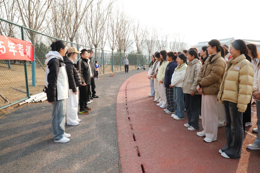 孙超在动员讲话时强调,同学们在春训期间务必将安全置于首位,秉持科学训练原则,循序渐进,确保在安全的前提下训有所获。他希望同学们通过春训,加强体育锻炼,切实提升身体素质,并在即将到来的学校春季运动会上,充分展现个人风采,为集体荣誉不懈努力、贡献力量。张东霞向同学们强调了提高身体素质的重要意义,并鼓励同学们要端正态度,训练中量力而行,互相帮助,祝愿大家安全顺利地完成训练任务。