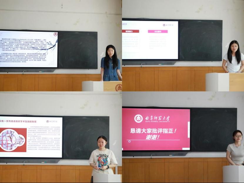 与会师生围绕教育理论研究的深化与实践创新的拓展展开了多维度、深层次的学术交流。在学术分享环节,研究生们就稷下学宫的学术传统、博放与精约教育理念、学科能力导向的英语试题编制策略、中华优秀传统文化融入幼儿园等议题,展示了富有创新性的研究成果。评委老师从研究框架的科学性、研究方法的适切性、学术创新的价值性等维度进行专业点评,为同学们后续研究提供了建设性指导。