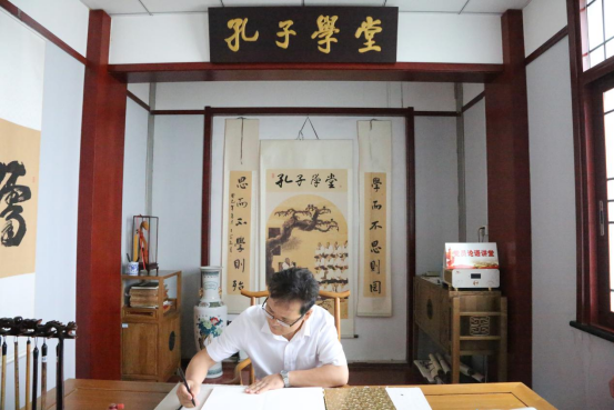 唐爱民院长表示,希望通过本次实习,能让实习教师充分认识教育工作的意义,真正体会到当一名人民教师的高尚和光荣,期待实习教师能圆满完成实习任务,早日成为合格的人民教师!唐院长还亲自为孔子学堂题字并为苏明校长颁发兼职教授聘书。