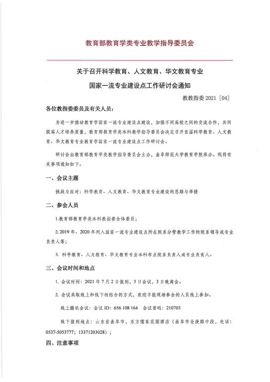 关于召开科学教育、人文教育、华文教育专业国家一流专业建设点工作研讨会的通知