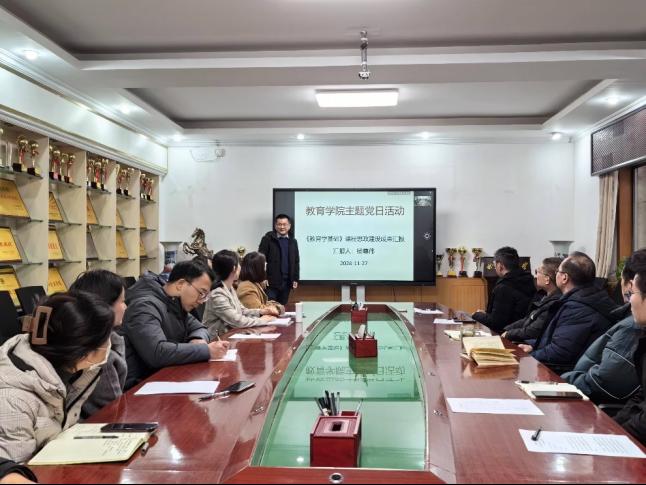 教工党支部在学院101会议室组织开展教工党员集中学习暨推进课程思政建设主题党日活动。此次活动由党支部书记李春迪主持,支部全体党员参加。
