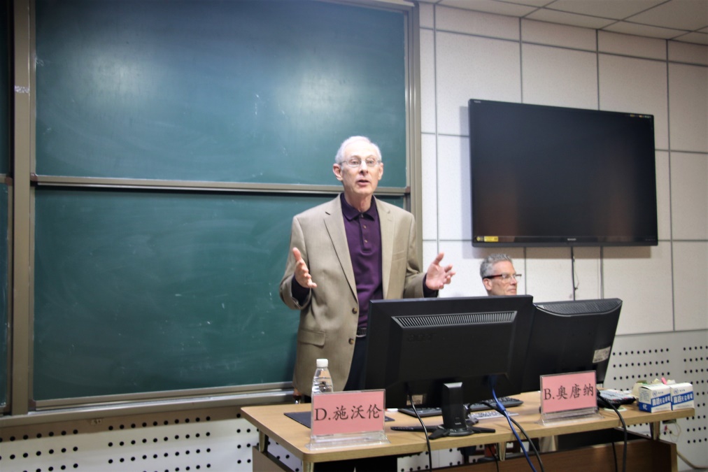 2018年9月25日下午,美国伦理意识研究院院长、美国企业社会责任研究中心主任和美国心路治疗学会负责人D.施沃伦博士与著名心路治疗学家B.奥唐纳博士应邀来我院做学术报告。报告由我院心理系主任孙俊才副教授主持。