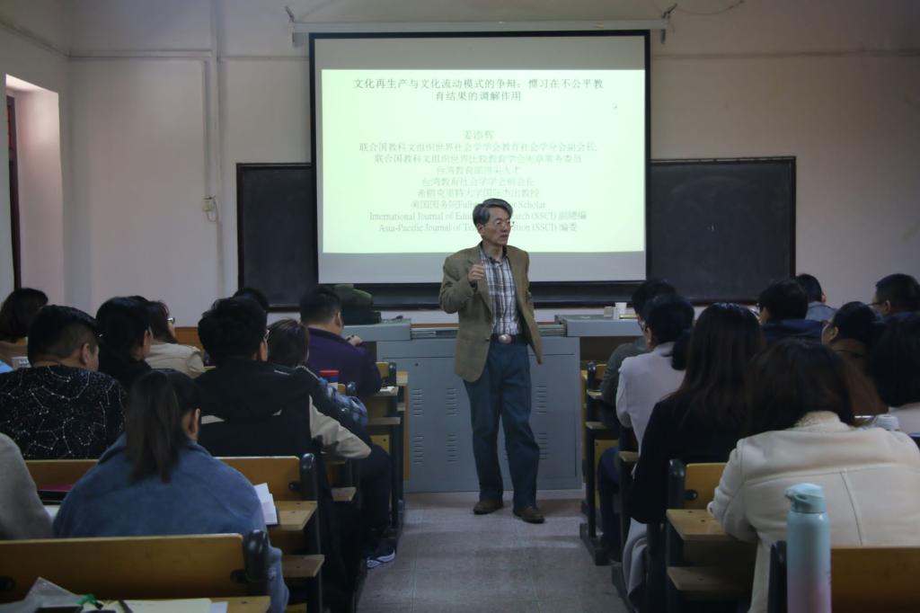 姜添辉教授在学院306教室给教育学研究生作了题为“文化再生产与文化流动模式的争辩:惯习在不公平教育结果的调解作用”的报告,姜教授首先从文化再生产和文化流动的起源、发展讲起,指明文化资本是构成惯习形态的基础,从而进一步阐明惯习的调解作用。在提问环节,姜添辉教授对同学们提出的问题进行了认真的解答。